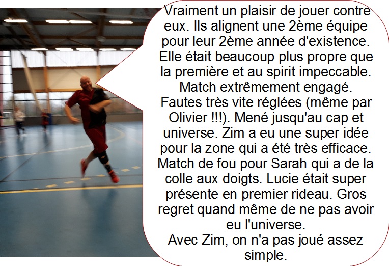 Premier match du week-end plein de tension car la voiture de Capitaine Aurélia et de sa copilote Blondinette arrive avec 45mn de retard. On croyait à une blague quand elles nous ont prévenus qu’elles avaient loupé la sortie Nemours, mais on a commencé à s’inquiéter quand elles ont rappelé pour nous prévenir qu’elles avaient à nouveau loupé la sortie dans l’autre sens. Finalement le 3éme essai sera le bon et elles se pointent tranquillement au milieu de l’échauffement avec un Matt très discret, et bien après le captain meeting assuré par le coach déjà dépité. Faut dire que le Coach il s’y connait en orientation. Pour ceux qui ont la mémoire courte voir ici.